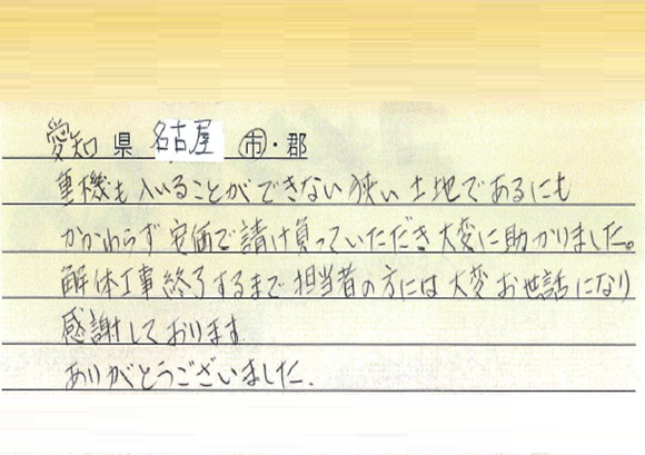 解体ニッカでは、自社による、営業社員、解体作業員、解体重機で行っているため、建築会社や不動産会社のような下請け解体業者さんを使っている会社のお見積りに含まれる中間マージンが一切掛かっておりません。